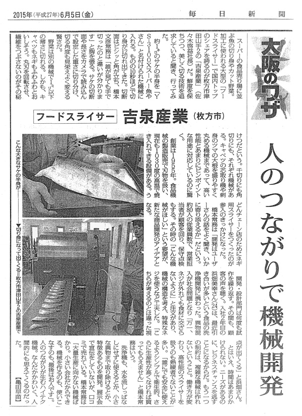 読売テレビZIP!にて吉泉産業株式会社の高速スライサーマシンが紹介されました